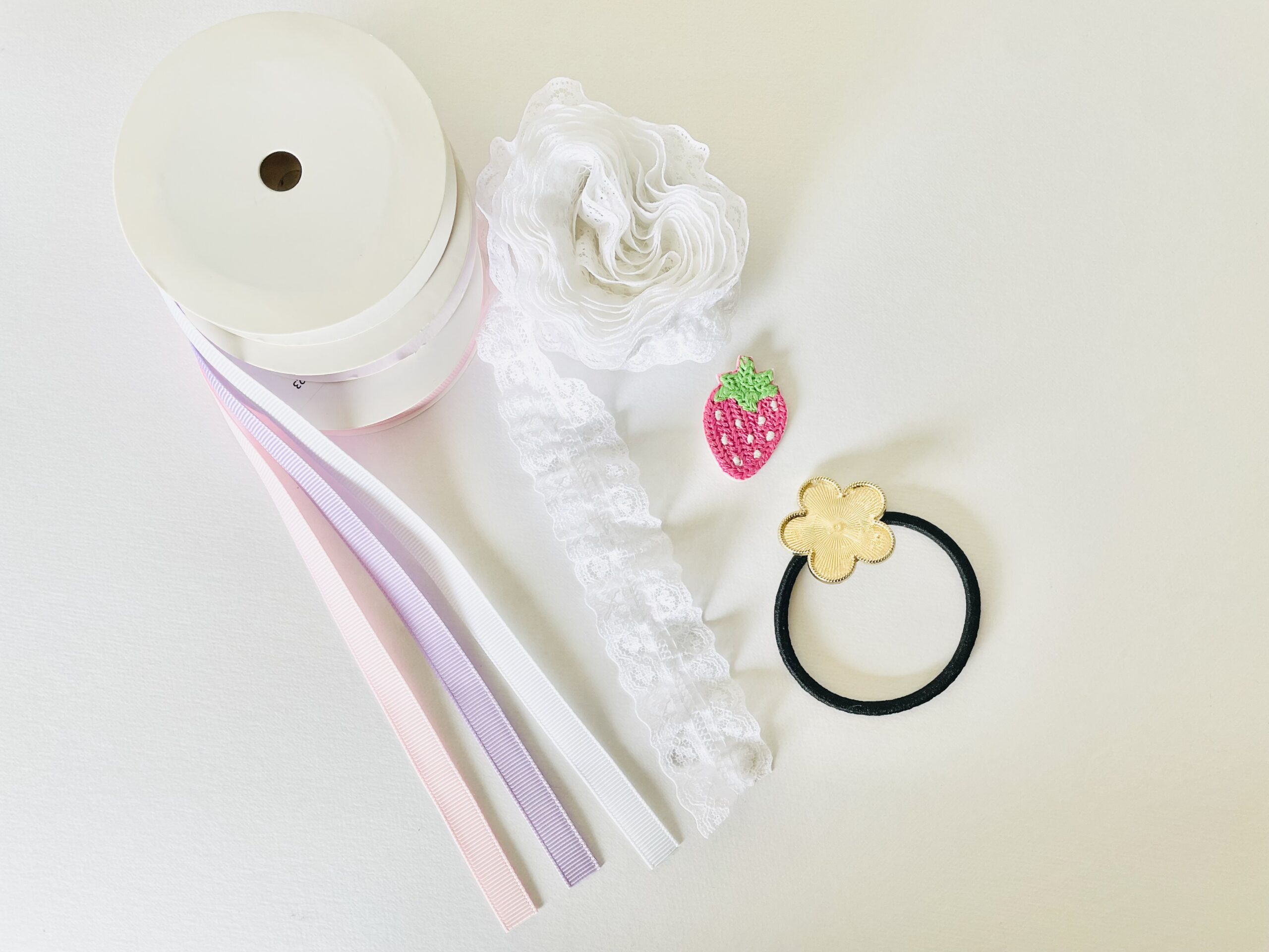 ポンポンリボンヘアゴムの作り方を順を追って解説します