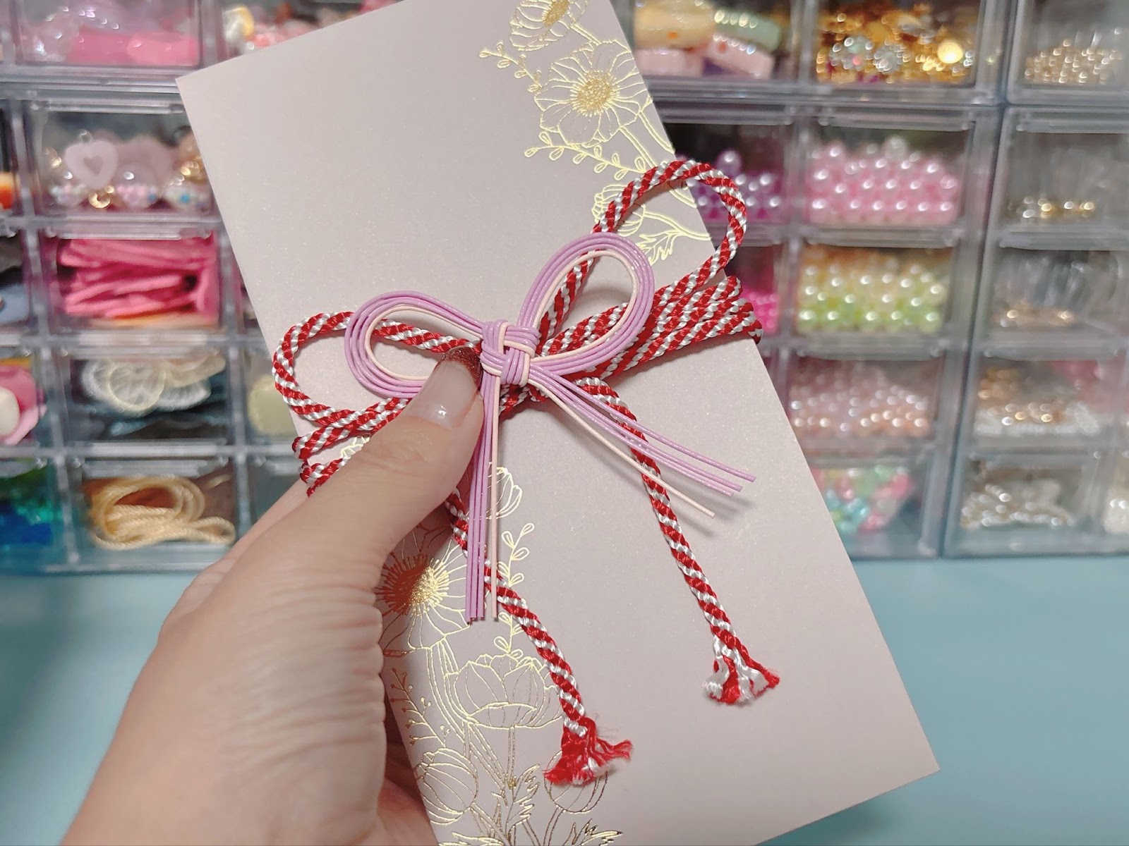 いかがでしたでしょうか。日本のお正月、風情溢れるポチ袋が仕上がったかなと思います。今回使用したリボンは、二色のお色が組み合わさった繊細な江戸打ち紐です。そもそも江戸打ち紐は繊細な作りで和テイストにもってこいの素材となっております。単色でももちろん素敵ですし、リボンを加えるだけでただのポチ袋がこんなに素敵に演出できることをご紹介させておいただきました。是非まもなく迎えるお正月、リボンでちょっとテンションが上がるような、素敵な年のスタートをお迎えください。