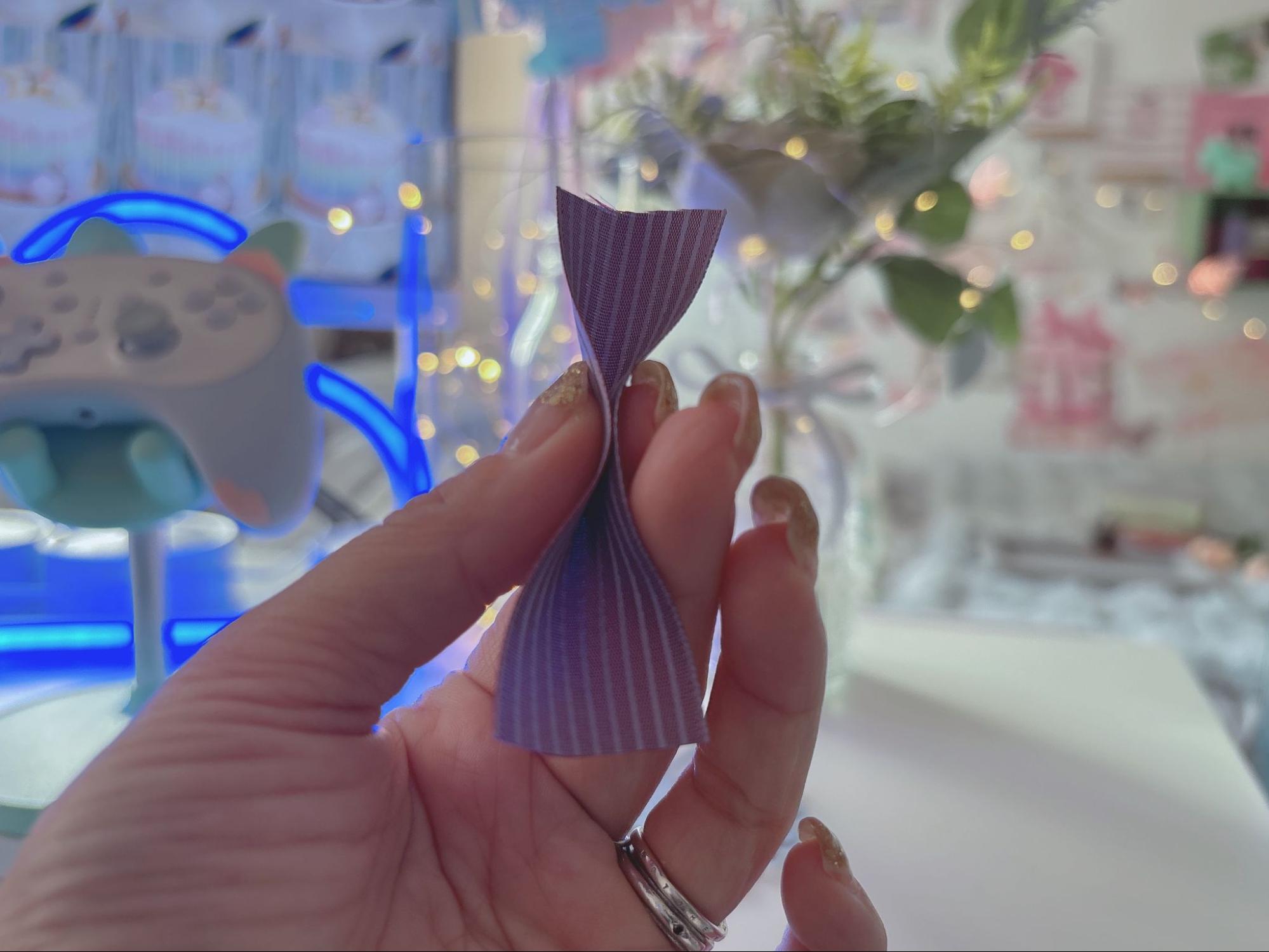 - 中央をきゅっとして、糸で固定してリボン型にします。