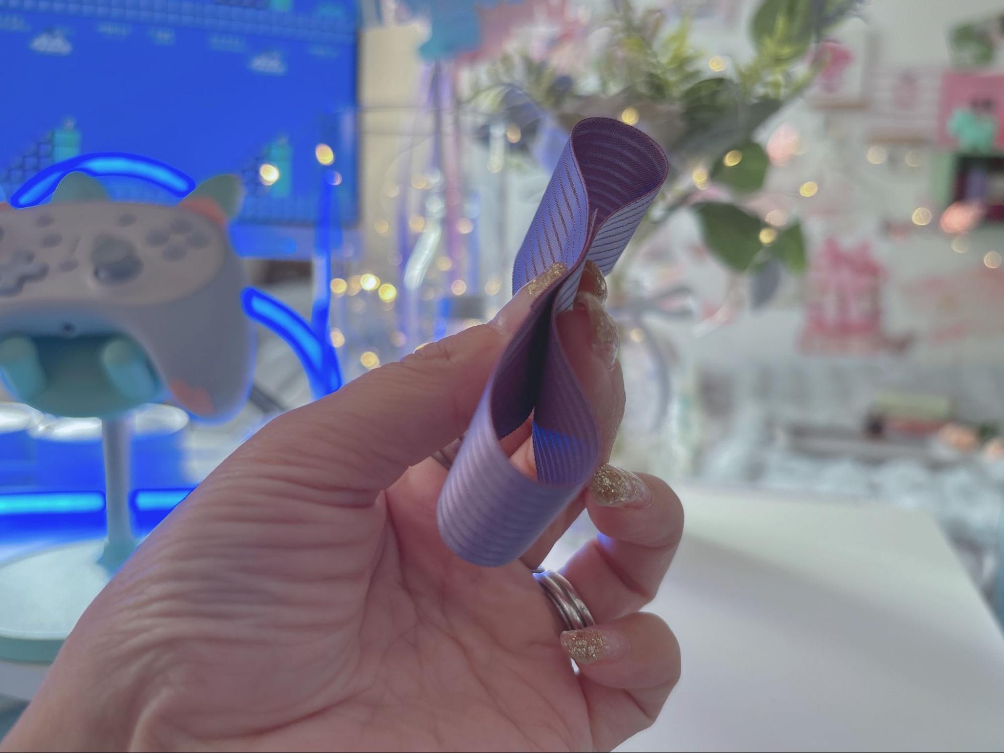 - このように、裏表のリバーシブルを生かして、違う色のリボンが2色できます。