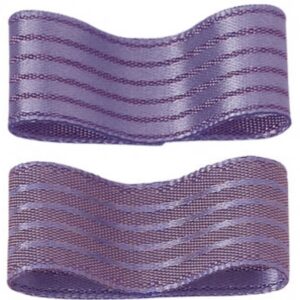 ペンタストライプシャンブレーリボン #636片面サテンの変り織りで、見る角度によって色の見え方が変化するシャンブレー調のリボン。ペンタストライプサテンのタテ糸とヨコ糸の色を異なる色に染めました。極細のポリエステル異型断面糸(糸の断面が丸ではない糸)を使い、高密度なサテン織りをすることで、ゴージャスな光沢を作り出しています。2色のコントラストが可愛く、見る角度や使用方法によって様々な表情を見せるリボンです。