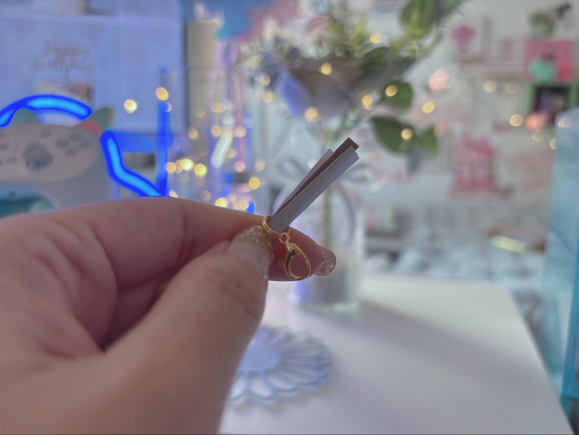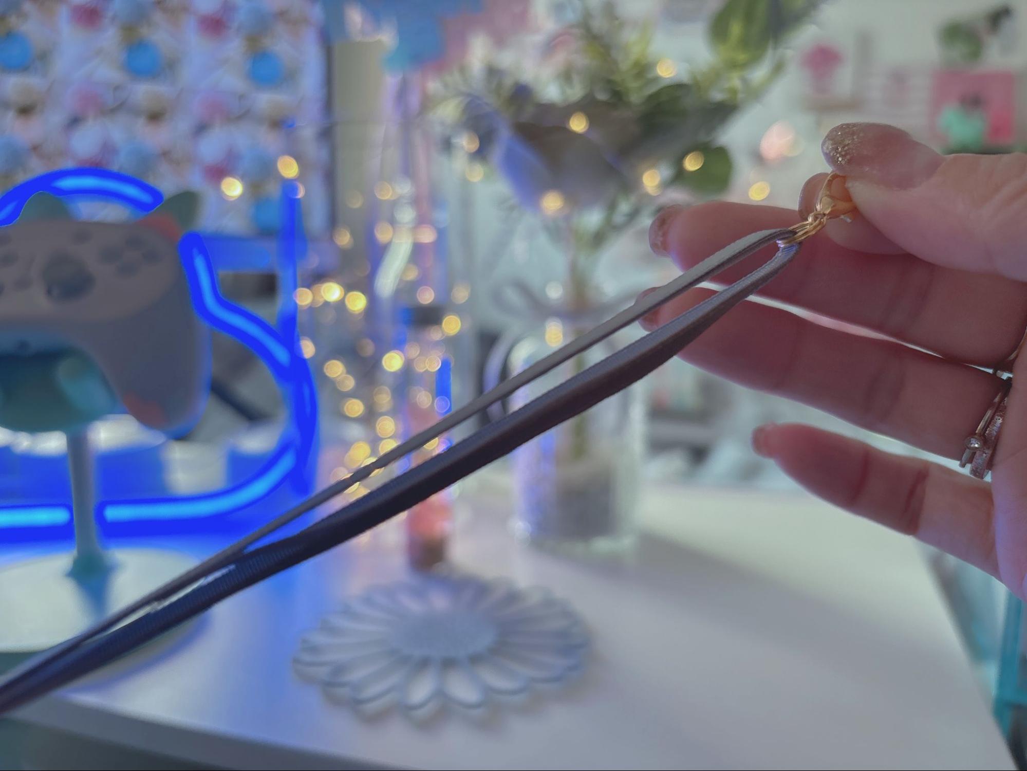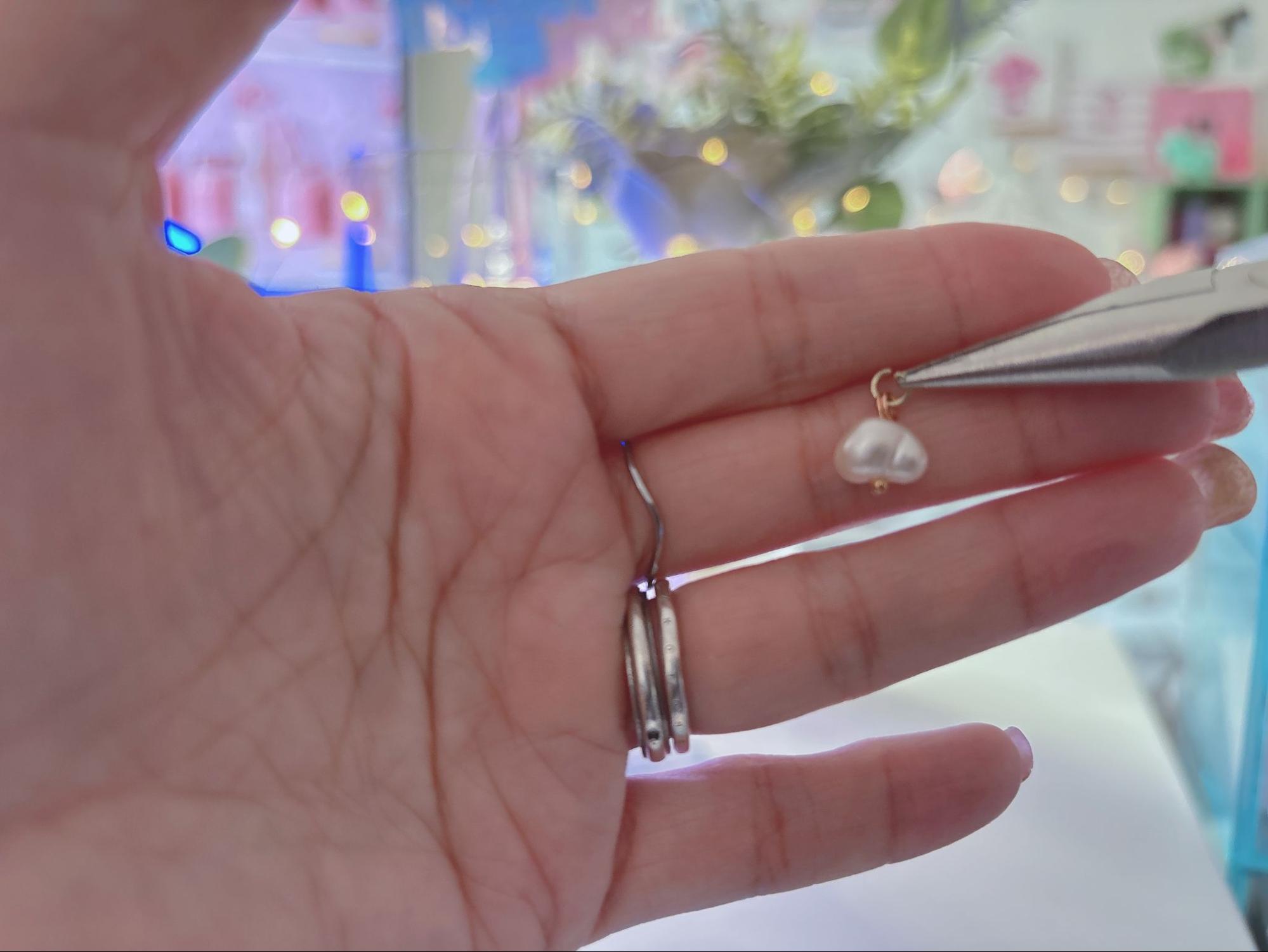 - ここに、お気に入りのパールなどちょっとしたモチーフをつけます。