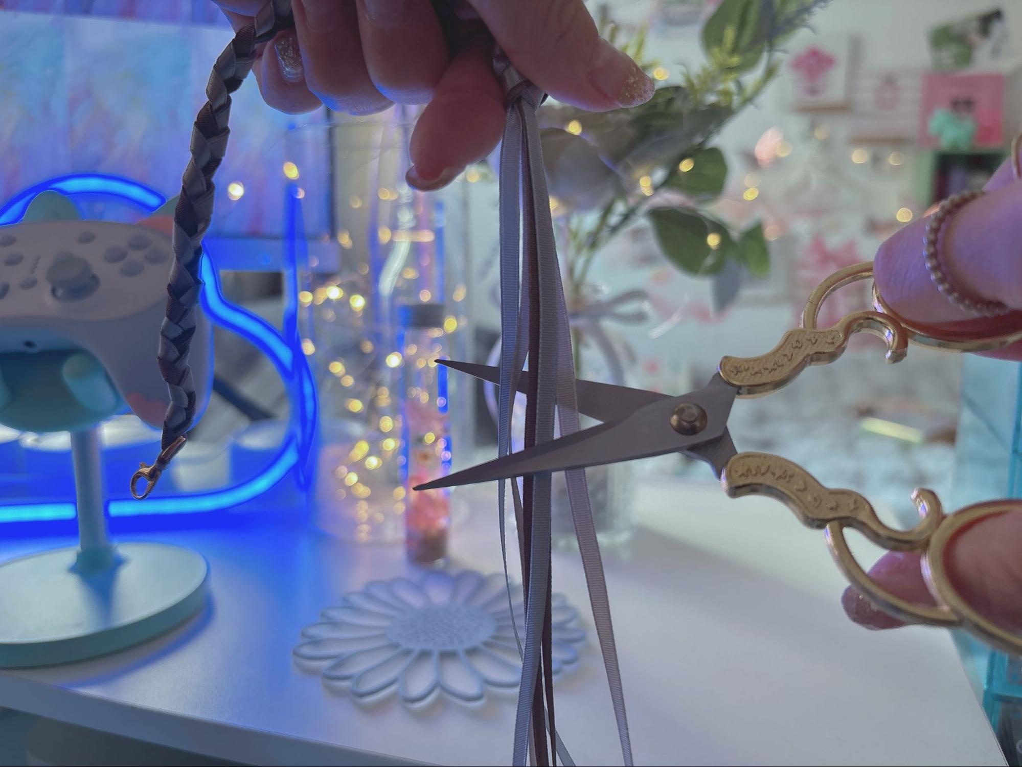 - リボンをカットします。この時に少し長めに垂れるような長さでカットするのがポイントです。これで一気に洗練された高見えデザインになります♪