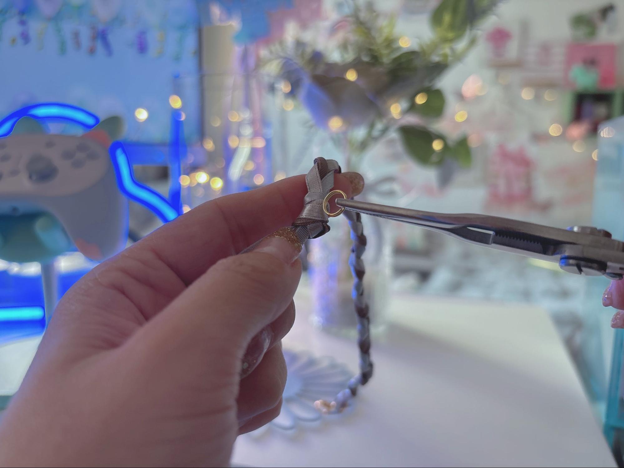 - リボン3色を手に持ちます。1のマルカン部分に通します。