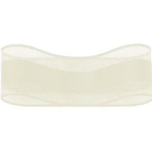 センターサテンオーガンジーリボン #039(オフ)サテンとオーガンジーを上手く組み合わせたリボンです。サテン織りでは少し重く、オーガンジーのみでは少し軽いと感じる場合に丁度良い感じで使用いただけるリボンです。このリボンは細い幅よりも広めの幅で使用して頂いたほうがリボンの良さが増します。オーガンジーをメインに使用したい場合にはこのセンターサテンオーガンジーを、サテンをメインに使用したい場合は、逆にしたエッジサテンオーガンジーを使用いただくとぴったりです。