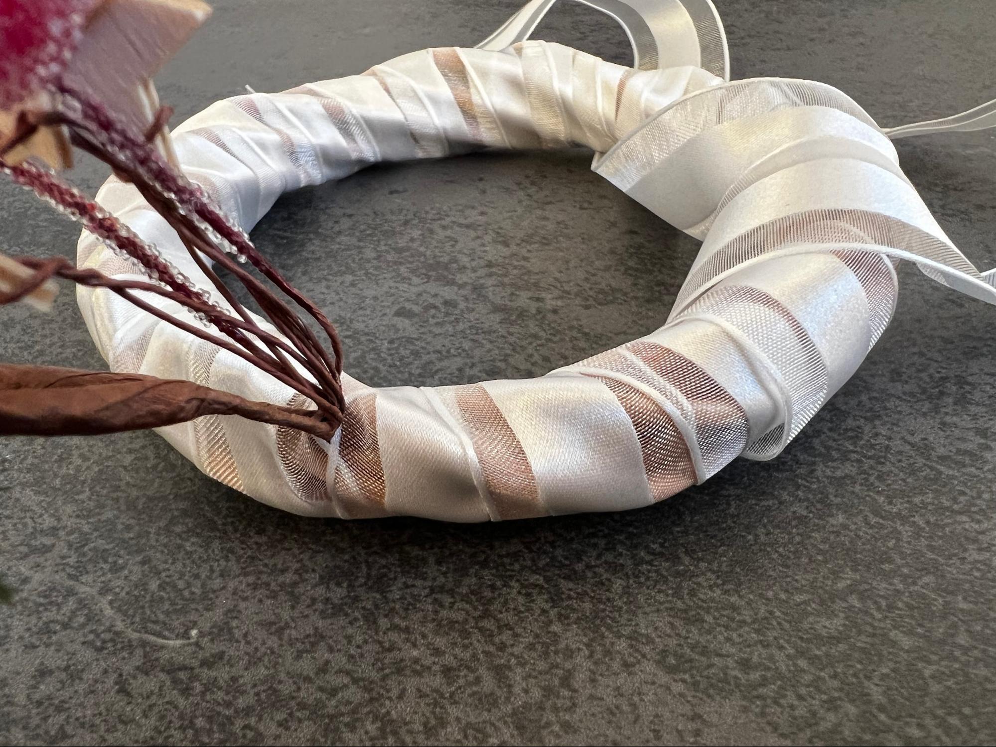 - リボンを1周巻いたら残してた30cmのリボン部分を結んでリボンを作ります🎀