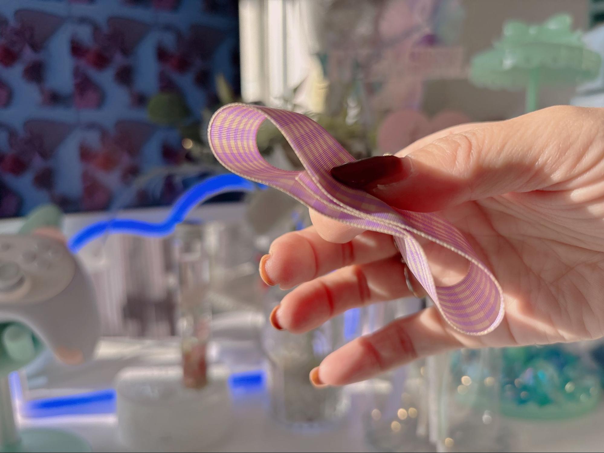 - 残りのリボンも位置を決めて、バランスをみながらグルーで固定します。