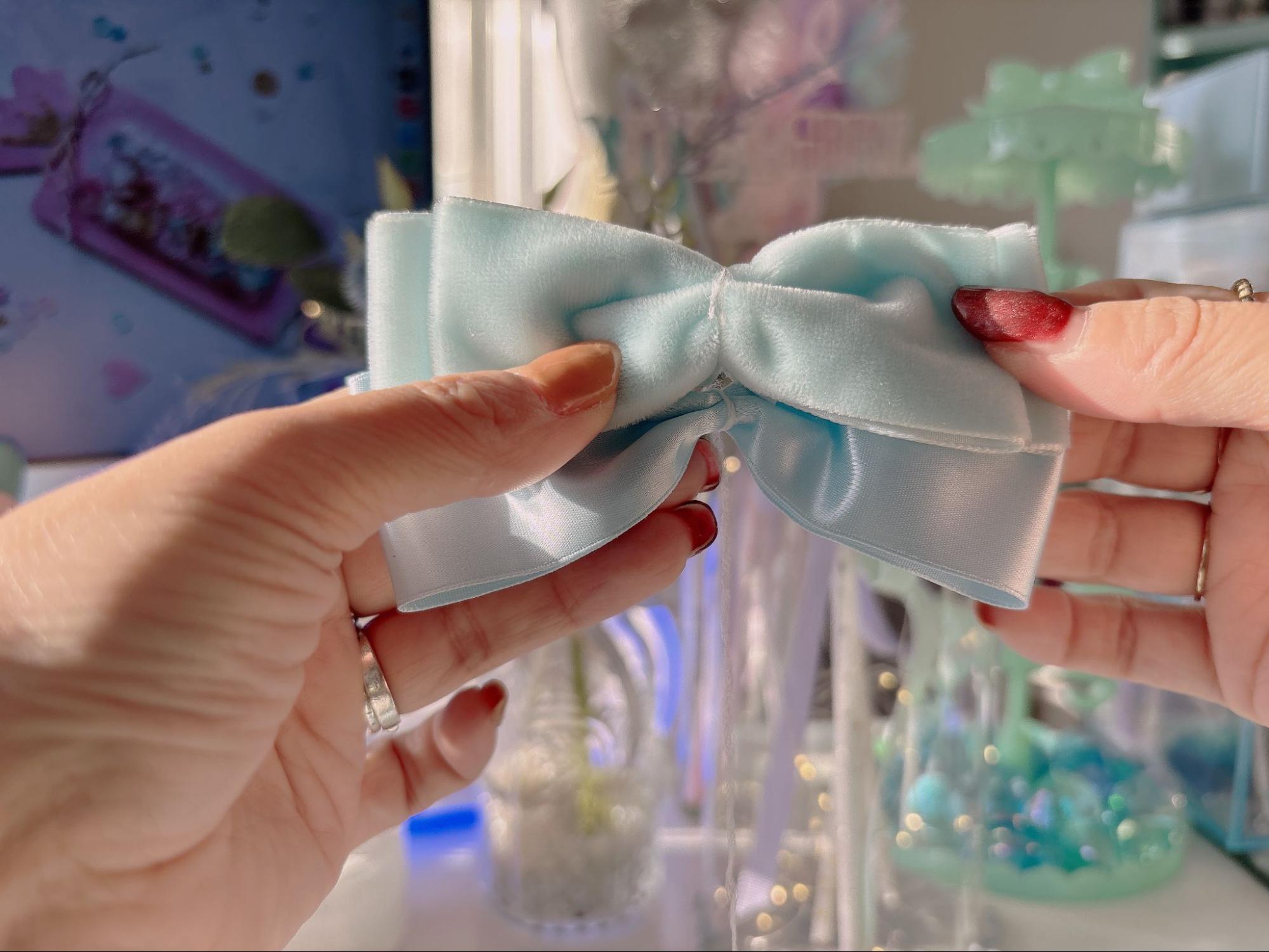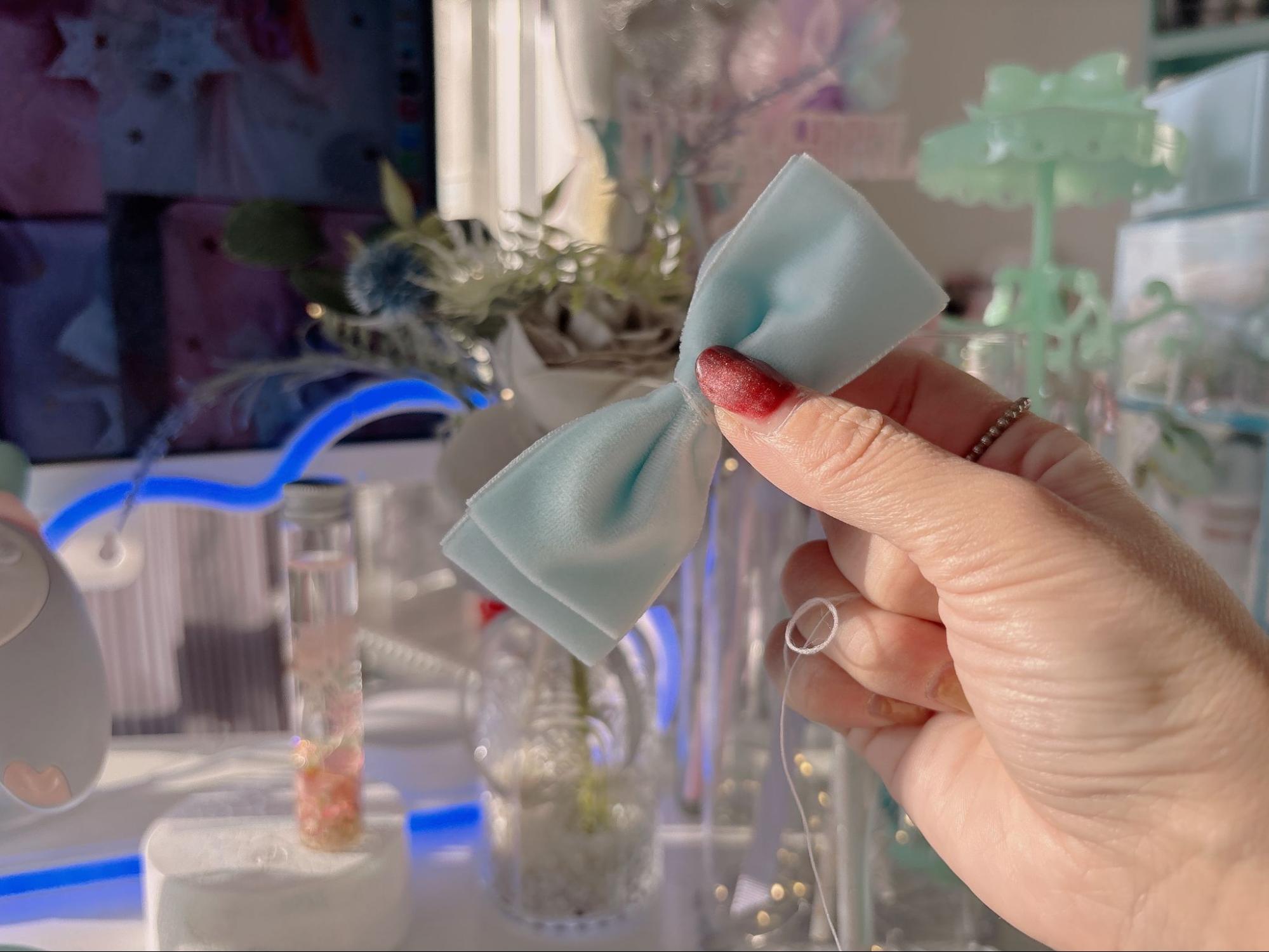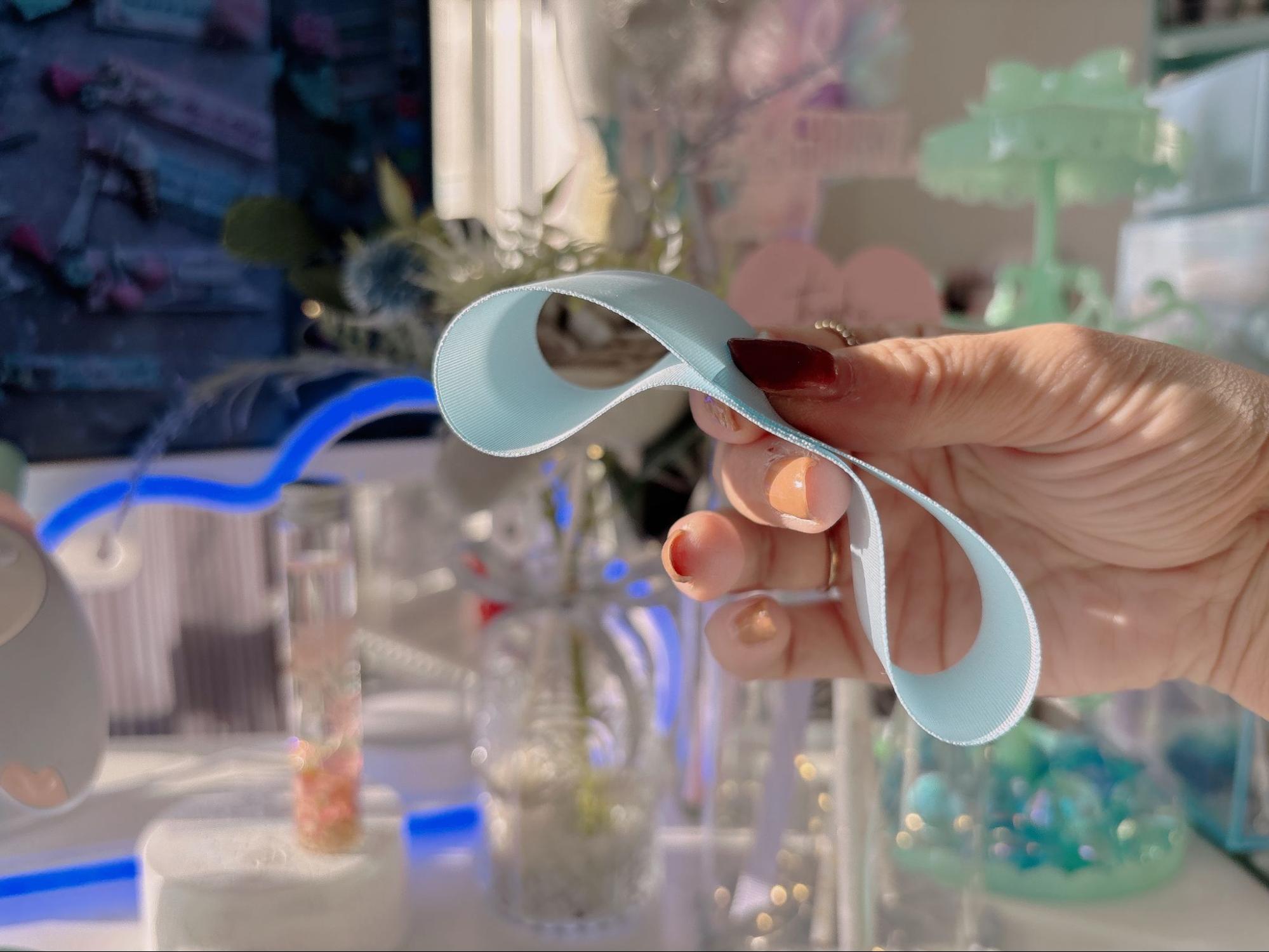 デコるのってワクワクしますよね♪リボンに今回は、デコレーションパールシールやチャームを使って、自由にデコってみました。冬らしい水色カラーを、違う素材を組み合わせたことでふっくらとボリュームを盛りながら仕上げることができました。今回は、チャームにもなってコサージュにもなる、2wayで使えるリボンの作り方をご紹介しました。色を変えたら推し活リボンにもなりますし、季節によってカラーを変えて楽しんでもいいですし、お子様と作っても楽しい時間になると思います。是非ハンドメイドでリボンを楽しんでいただけたら嬉しいです。