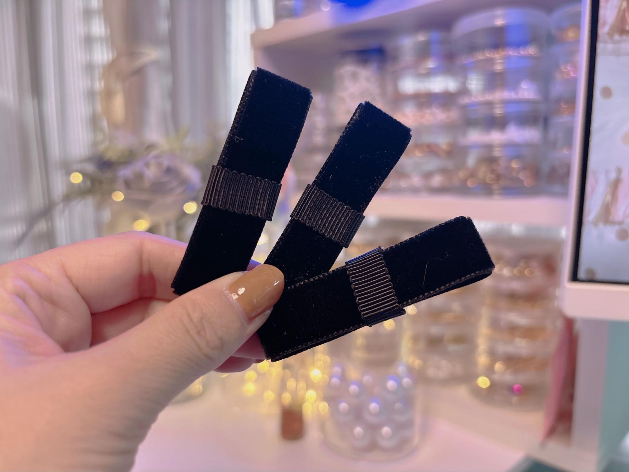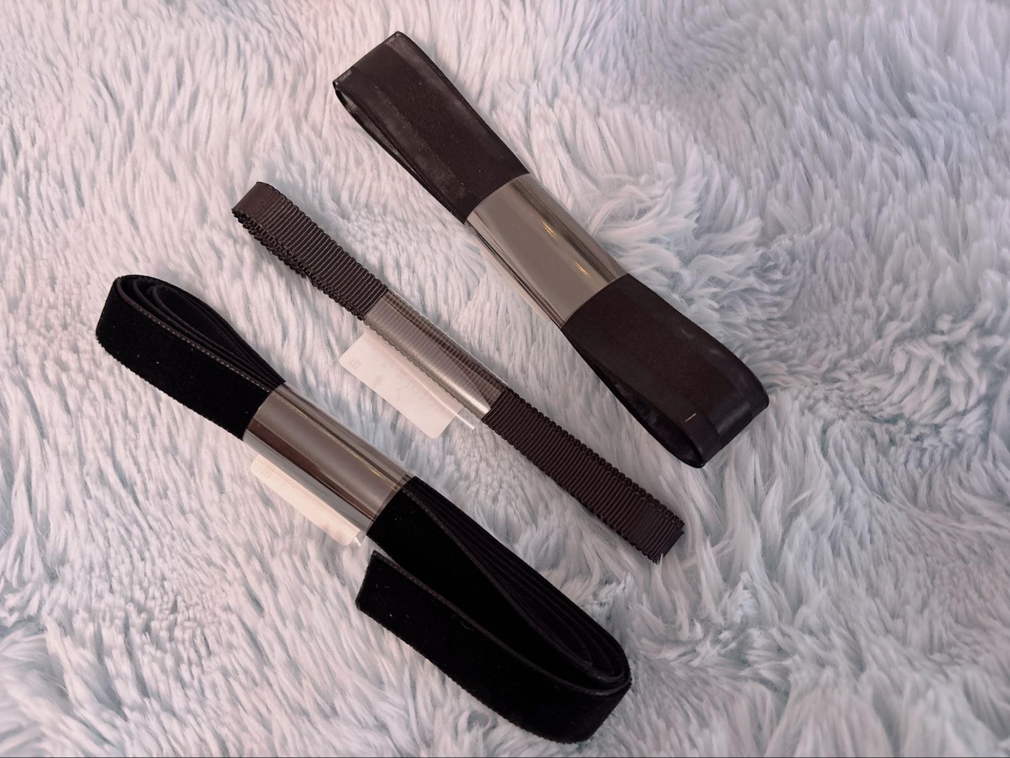 - シングルナイロンベルベットリボン 9mm幅を12cmカットしたもの3本