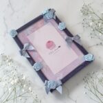 10.中央に巻くリボン5cmを三つ折りにする。(この時に、ライターなどでリボンの端を炙って端処理をしておくと仕上がりが綺麗です。)